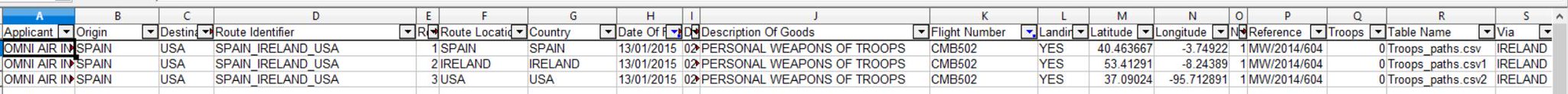 Shannonwatch had previously FOI'd similar info and had a file of flights from 2014/2015.